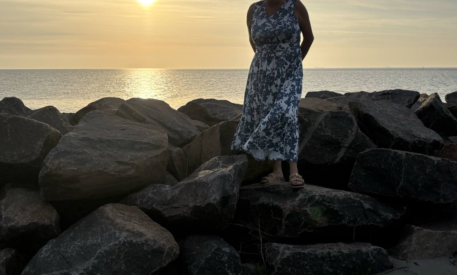 Kjolen er ærmeløs med bindebånd i taljen, der fremhæver figuren på en smuk og behagelig måde. Det lette, strækbare stof giver komfort hele dagen, uanset om du er på ferie i sydens sol, til en havefest eller bare vil have et elegant look i hverdagen.