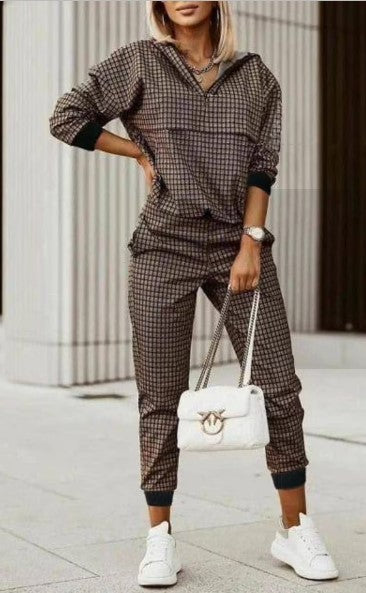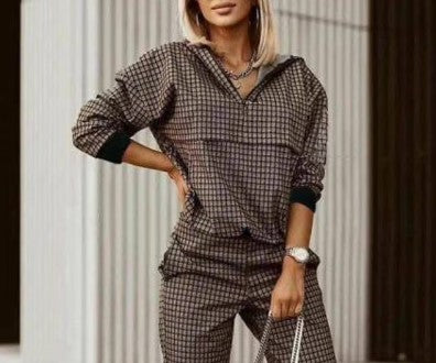 Denne løstsiddende trøje i brunt og sort ternet mønster er det perfekte mix af komfort og stil. Den har en flatterende V-udskæring, brede manchetter i sort kontrast og en cool, afslappet pasform, der giver masser af bevægelsesfrihed – uden at gå på kompromis med looket.
